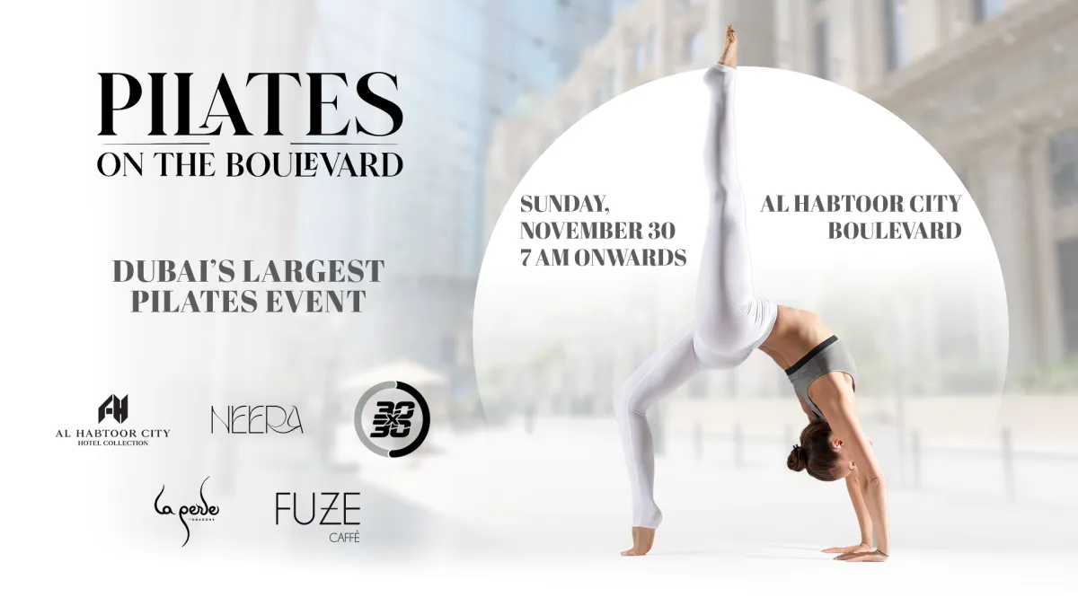 Join us at Al Habtoor City Boulevard for a special Pilates event in support of Dubai's 30x30 Fitness Challenge. Enjoy an energizing morning session followed by delightful breakfast offerings.